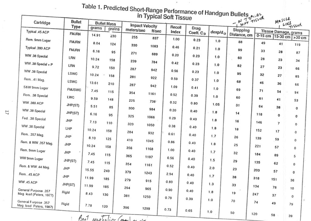 By the time I finished, I had a kitchen table stacked with shooting/autopsy reports from all over the country with so much data I could hardly process it. One thing stood out, though; for every shooting in which a particular caliber and bullet style performed well I had also received one in which it failed.