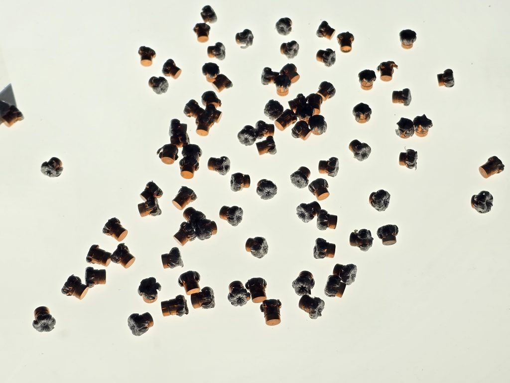 Projectiles are actual jacketed hollow points designed to expand at the sorts of velocities you’d expect from a short barrel.