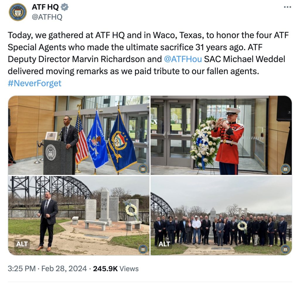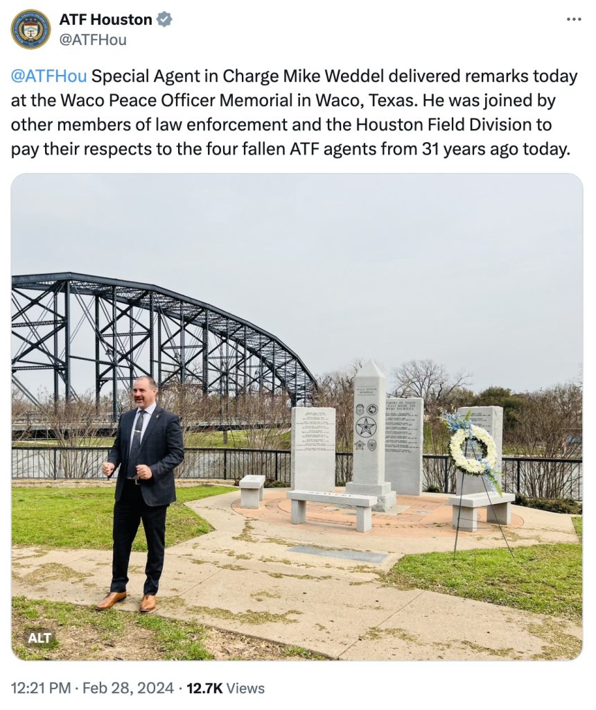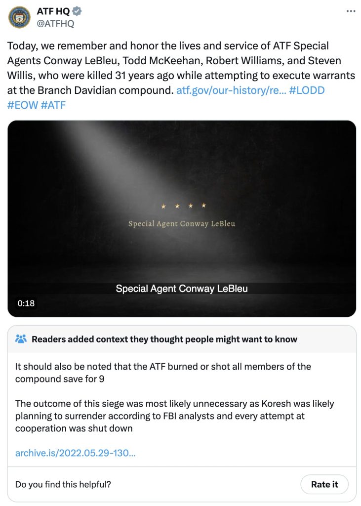 Despite the scores of innocent lives lost and the suspicious nature of the whole seige and operation, the agency still does something extremely stupid every year: it memorializes its agents who died on social media, as they did yesterday . . .