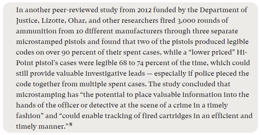 The Everytown article then goes through the history of the legislative side of how microstamping was enacted, including this tidbit: