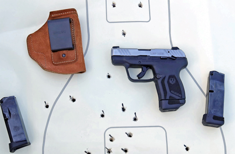The Ruger LCP MAX in the new thumb safety version makes plenty of sense for deep concealment self-defense; shown with the Galco Stow-N-Go IWB Holster.