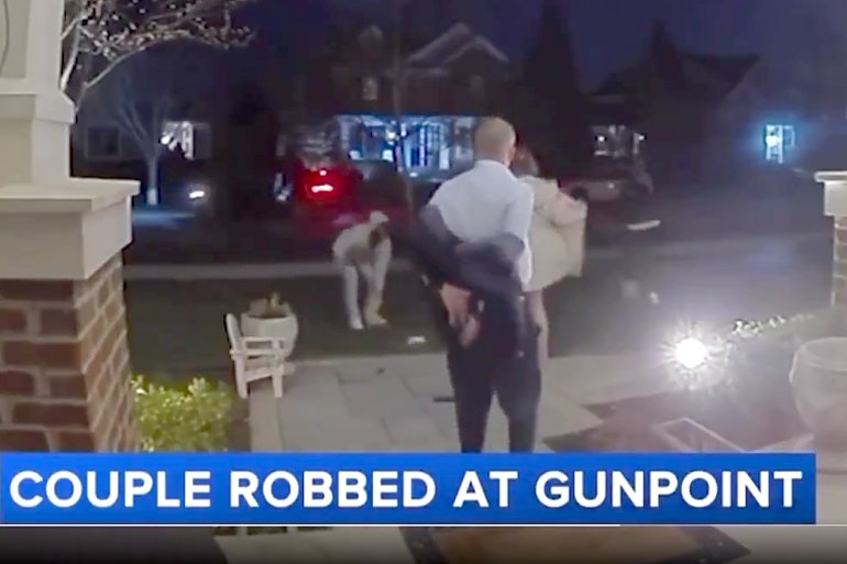 Take Gregory Poulos and his wife, Angie Beltsos, for instance. You can see them casually walking up to their front door while not paying a lick of attention to the traffic on the divided street out front. When a car lurched to a stop without any apparent reason, neither noticed.  An instant later, when the first hooded punk hopped out, neither one of them noticed that either.  Not until the first offender had already crossed the street pointing a gun at them did either Poulos or Beltsos see the threat.  Then they needed a fraction of a second to break the denial response.  “This can’t be happening!”