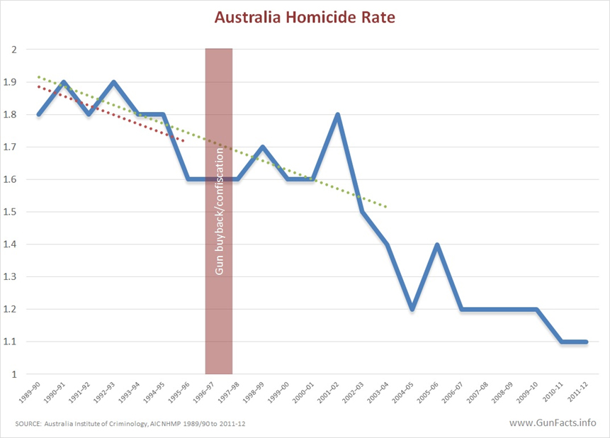 2. Australia has always had a low homicide rate and very few mass shootings, even before the Port Arthur gun control laws.