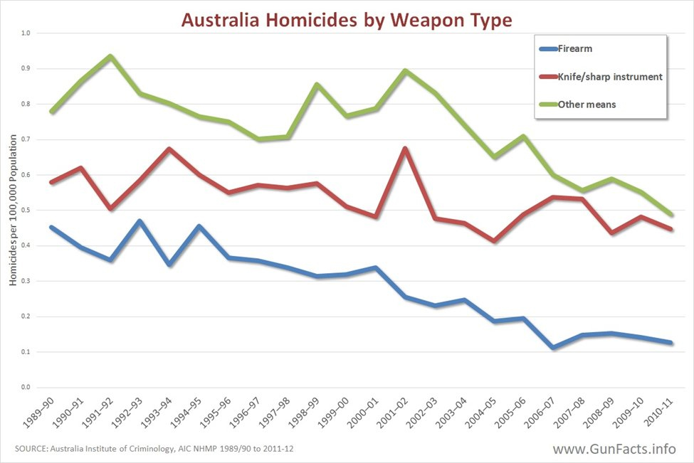 2. Australia has always had a low homicide rate and very few mass shootings, including before its gun law changes following Port Arthur;