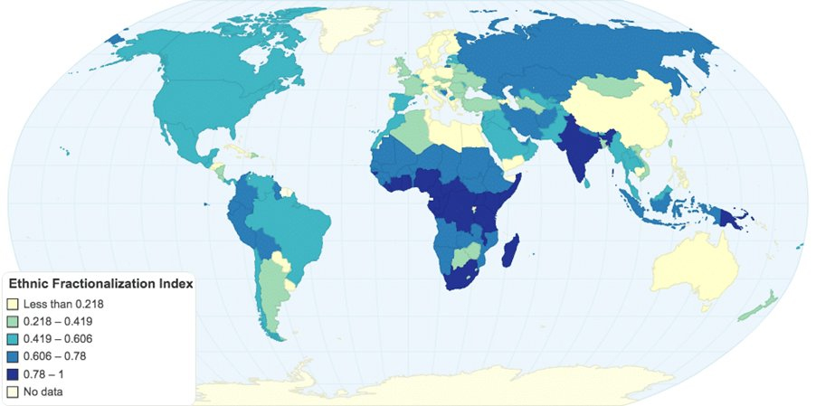 The United States is a major melting pot, which brings the benefit of economic dynamism, but also considerable tensions that can lead to increased violent crime. Australia is essentially the opposite in terms of its diversity. According to the Ethnic Fractionalization index, it’s one of the least diverse counties in the world.