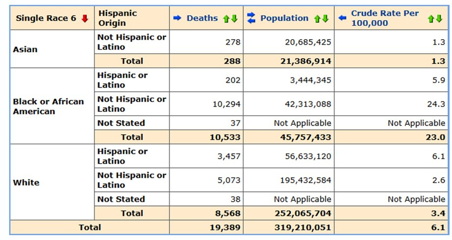 That’s important because homicide isn’t equally distributed among racial and ethnic subgroups in the United States, a topic which was the subject of another one of my articles.
