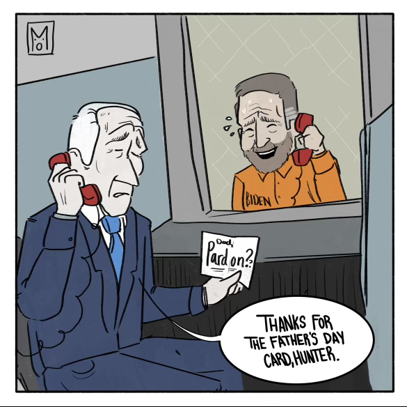 I can see his card saying that his lawyer wants him to negotiate with DOJ to get a deal on IRS charges. That 10 percent for the big guy is hanging over Joe like the Sword of Damocles and Hunter has scissors.