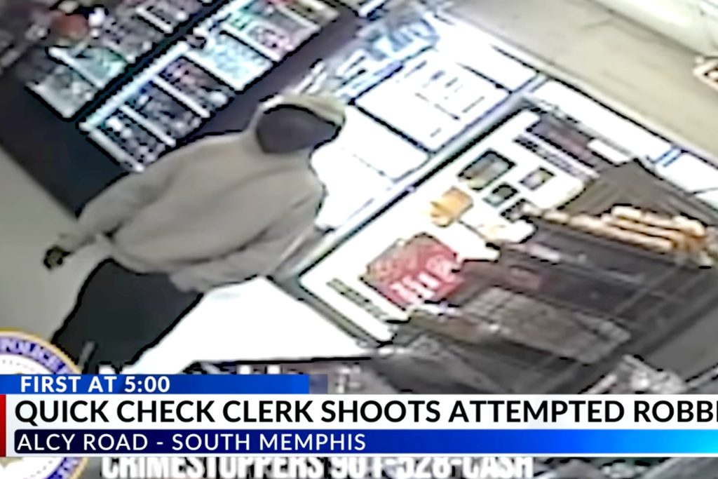 According to the Memphis Police Department (MPD), it happened around 10 a.m. at the Quick Check Store on Alcy Road near Perry Road. Video released shows a man in a white hoodie start to pull out a gun when he jerks back and runs away.