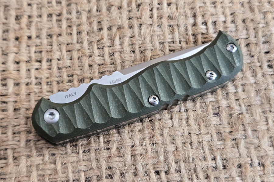 The 2.38 inch M390 blade features a drop point and an unsharpened swedge on the spine. It makes for a precise point for detail cutting. The factory edge was excellent, so much so that I cut myself almost immediately. A knife is really never yours until it’s tasted your blood. I bonded with the Tex Creek immediately.