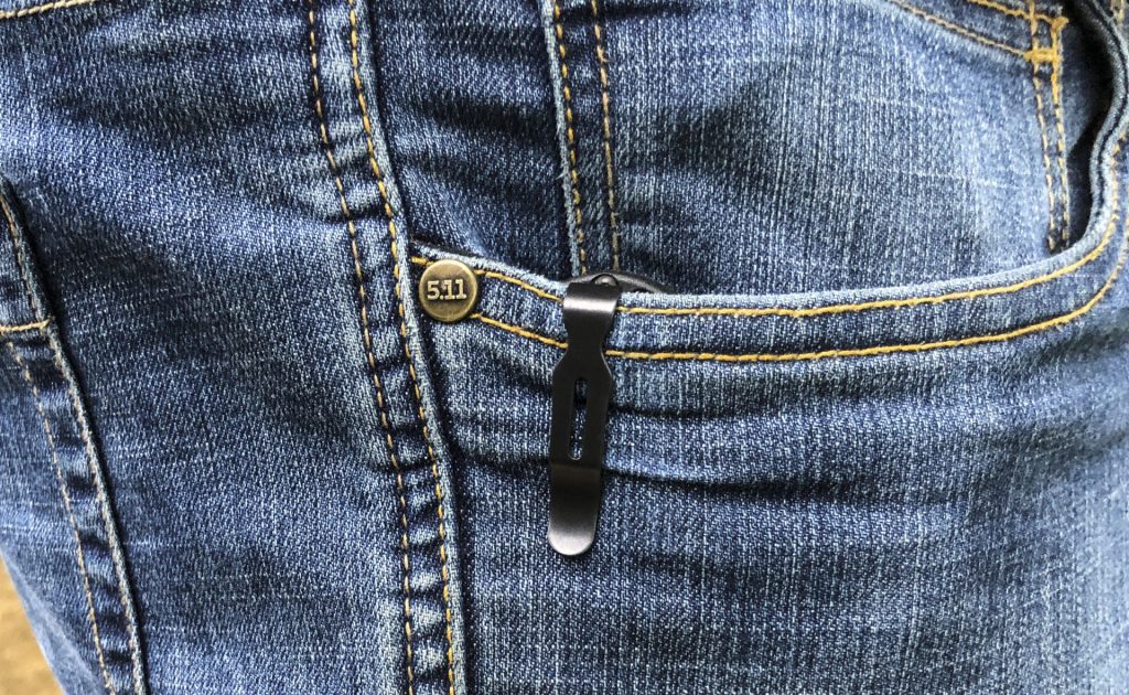 The standard stamped deep carry clip provides the ideal amount of retention and keeps the Mini Bugout riding low, virtually disappearing in your pocket.