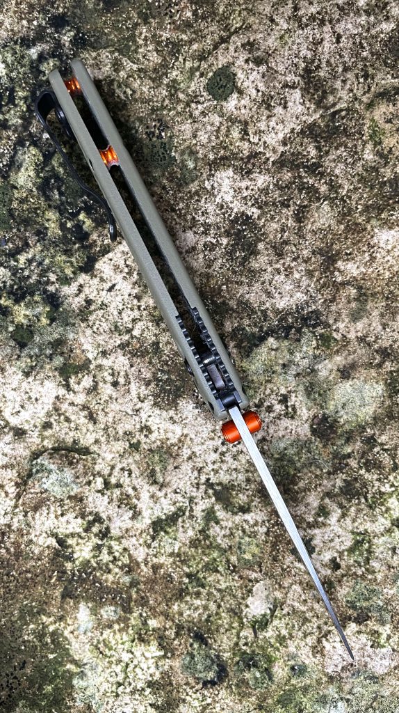 I didn’t go crazy with mu custom model. I got a satin S30V blade with OD scales, black screws and Axis lever and orange thumbstuds and standoffs. Nothing too blingy, just understatedly attractive and utilitarian. What an everyday carry knife should be.