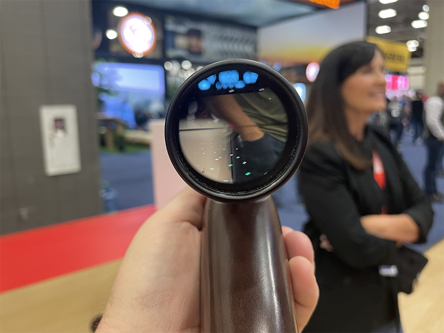 As you can see above, I failed miserably to get a good image with my phone of the Veracity’s heads up display on the NRAAM floor, but this is what you’ll see when you look through the scope: