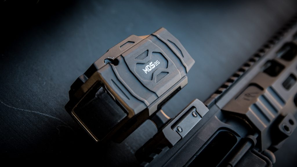 The one new product that I didn’t get to shoot was the all new MDS35 rifle optic. MDS stands for Modern Dot Sight. The MDS35 offers a massive field of view through its 36mm square lens. So much so it’s like looking through a rifle-mounted TV.