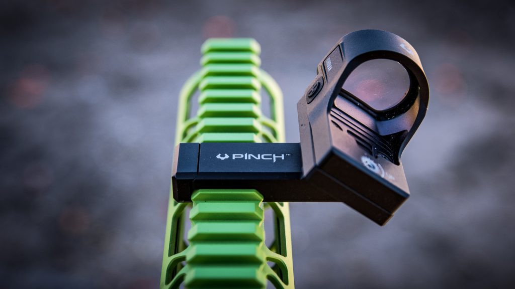 Another rifle product that stood out, and is currently available as of last October, is their ambidextrous 35-degree angled offset mount for dot optics. The PINCH ($79) comes with one of four mounting plate options: ACRO, RMR, Doctor or RMSc. The design allows the optic to shift to accommodate larger primary optics.