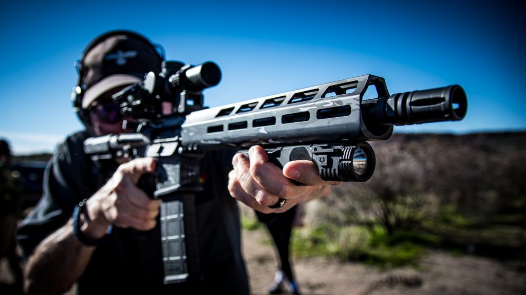 As the name might suggest, the 2K Duo offers both a light and a laser, in…wait for it…green. Shocking, I know. The unit I got to shoot was the standard 2K and the first thing I noticed was its ergonomics. Very comfortable. Brian explained to me that improved ergonomics and a whole lot more lumens were the main focuses of their redesign.