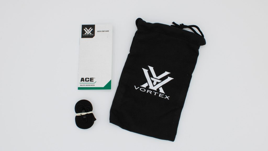 Integration is another strong point. Ace seamlessly works with Vortex’s Relay ecosystem and connects to the GeoBallistics app on your phone, giving access to a large bullet library and an easy-to-use interface. Turning it on is simple—press the menu button to turn it on, and hold to turn it off. It comes ready to use with a lanyard, batteries, a manual, and a pouch, making Ace a compact, reliable tool for shooters who want their data clean, connected, and dependable.