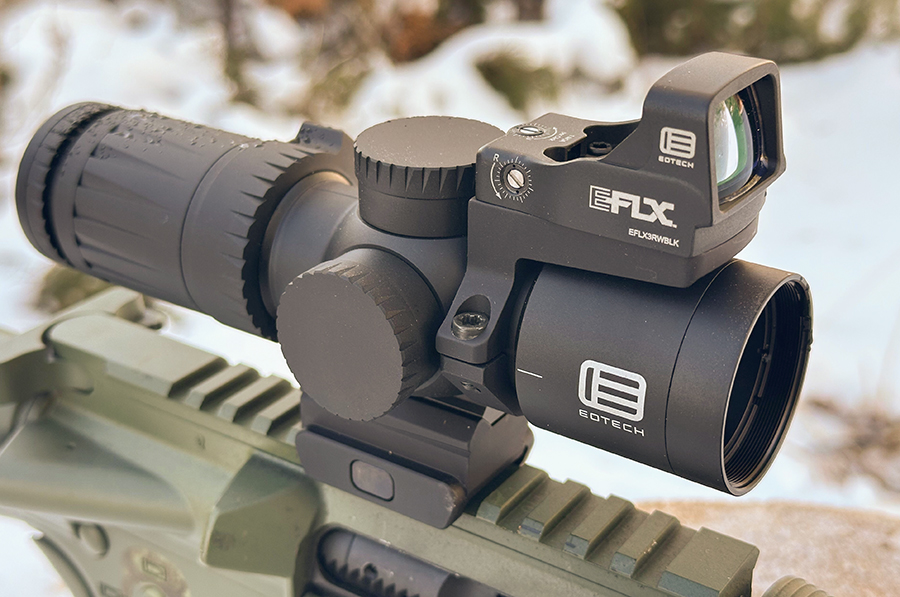 EOTECH’s VUDU 3-9×32 SFP riflescope with an EFLX red dot mounted piggyback
