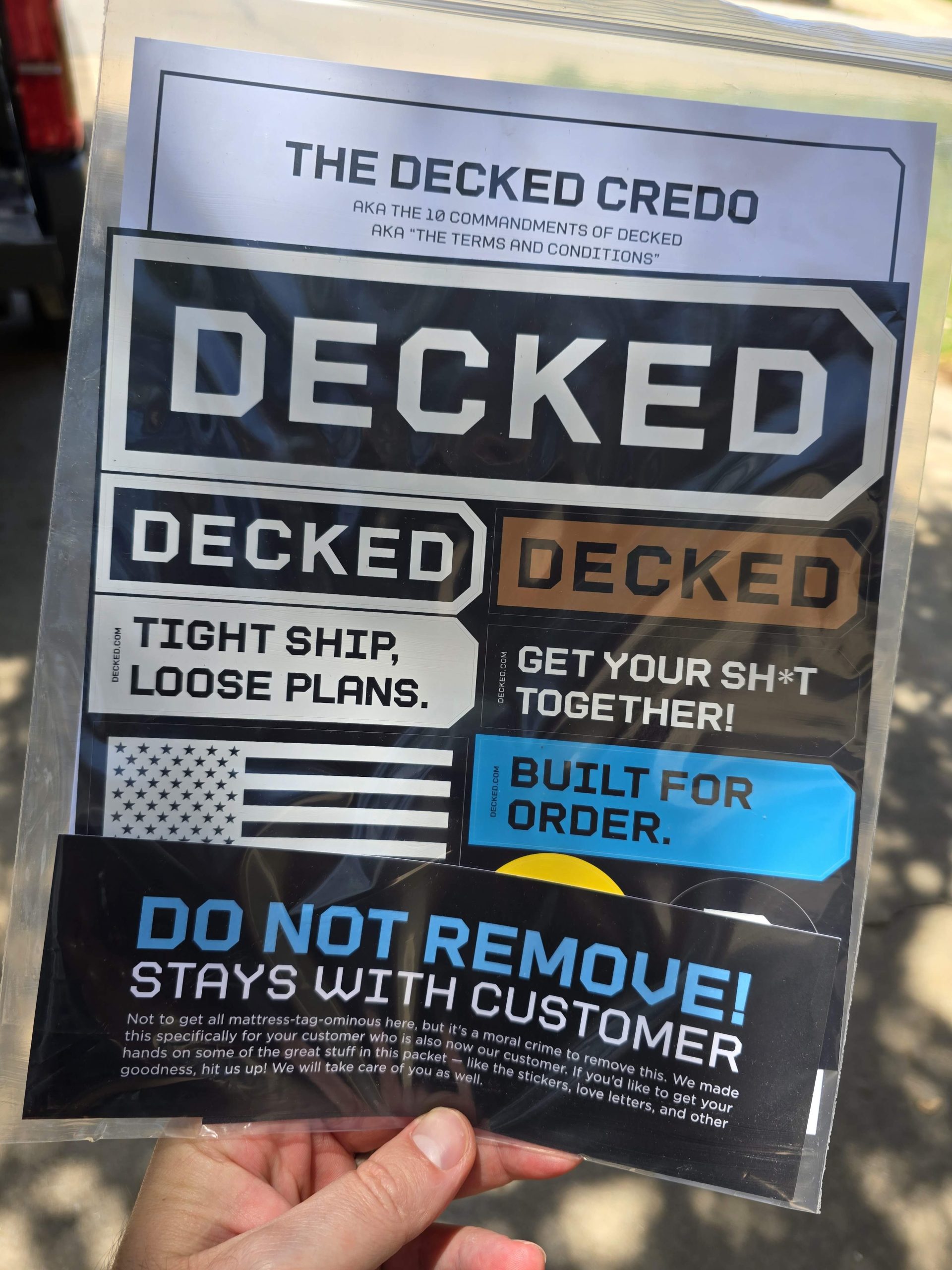 A huge sticker pack and “The DECKED Credo” were near the top of the box. Assembling something I’ve purchased isn’t always how I want to spend my Saturday, so the continued light hearted humor at least started me off in a good mood.