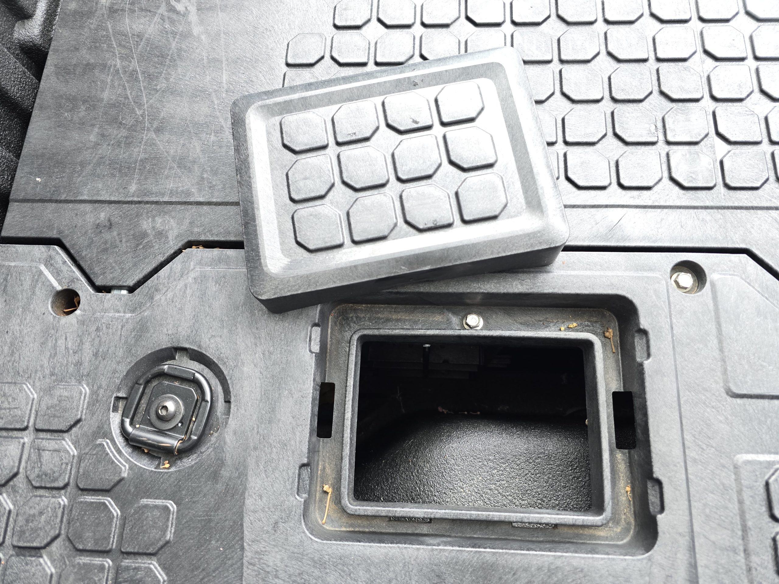 On my pickup I’m not able to use a bin under the front Stash Bin lids as my wheel well is in the way. Still lots of room for contraband down there, though.