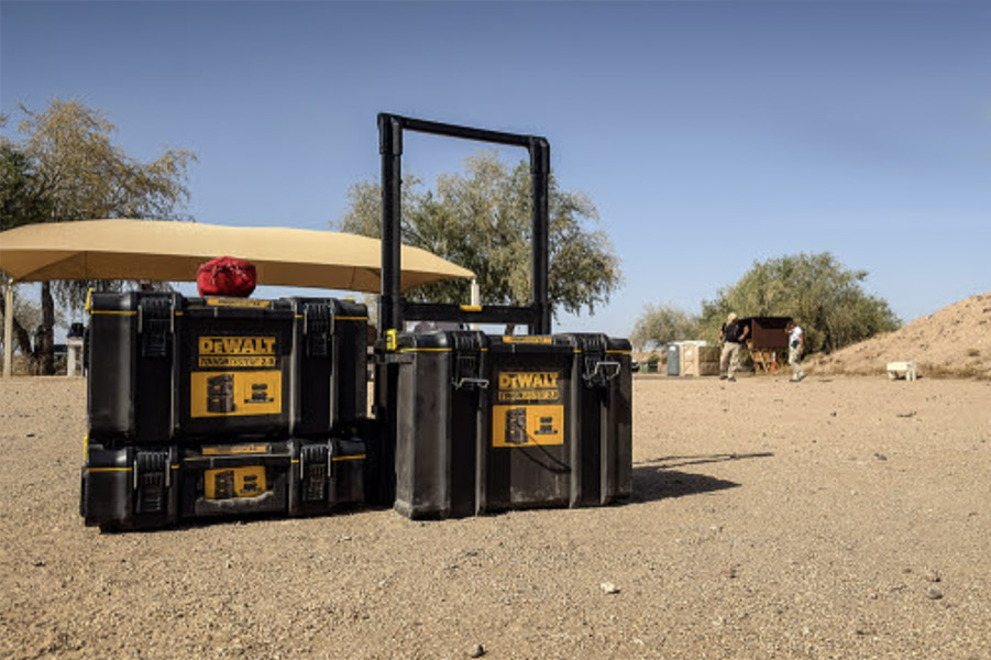 One of the options from GPS is this Rolling Range Bag. The owner, an instructor, uses this to carry all sorts of training paraphernalia. DeWalt’s ToughSystem modular stacking toolboxes (shown at the top) is what Freddie Blish uses for his training gear. (Photos: P. Erhardt)