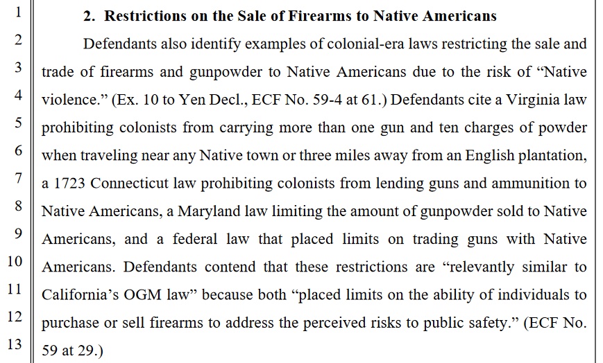 Then again, when the state is basing its Bruen-mandated historical justification of purchase limits on race-based restrictions on selling guns to American Indians, you know the California DOJ had nothin’.