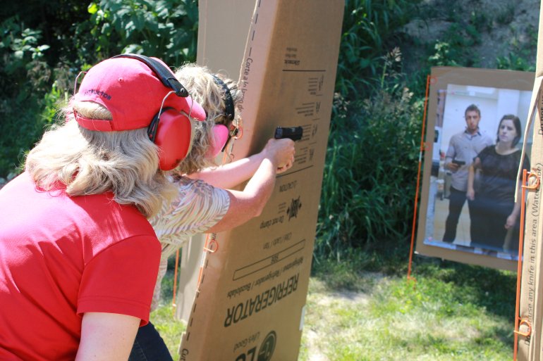 An Illinois teacher practicing tactics and target discrimination in a GSL Defense Training course. (Image by GSL Defense Training / John Boch)