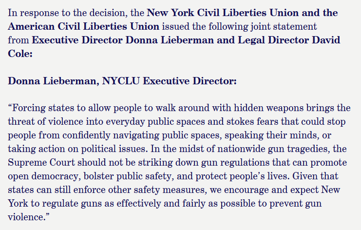 Sadly, there are still plenty of lawyers out there who think Bruen is merely a suggestion, or that they can somehow get away with ignoring it. Some legislators who really like putting limits on individual rights thought it wouldn’t last, and that the courts would eventually put things back again. So, given the two-tiered treatment it applied to certain civil rights, this statement from the New York Civil Liberties Union wasn’t much of a surprise . . .