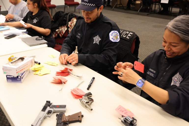 The #ChicagoPolice Department hosted two no questions asked gun turn-ins today in Belmont-Cragin and Back of the Yards. A total of 229 firearms and 95 replica firearms were recovered today. pic.twitter.com/Ns8bpEBvL8