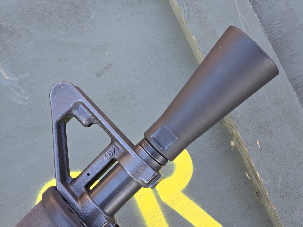 Capping off the 608 is a conical flash hider and split ring washer. The 608 came with either the cone flash hider or an XM177 style moderator. Personally I think the cone flash hider was the right choice. It’s unique, and kind of iconic if you see the original 608 pictures. Lastly you get a chopped A1 repro pistol grip and grip screw.