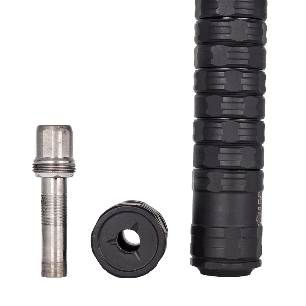 In addition to offering legitimate shot control with multiple restriction levels, the JK 195 innovated one other mechanism that made it the first truly practical shotgun suppressor: wad-friendly baffles. The trumpet-style mouth on each of the modular baffles allows the shot cup / wad to enter without damage while it simultaneously controls the wad to keep it closed all the way down and through the suppressor, whether you’re running one baffle or all of the baffles.