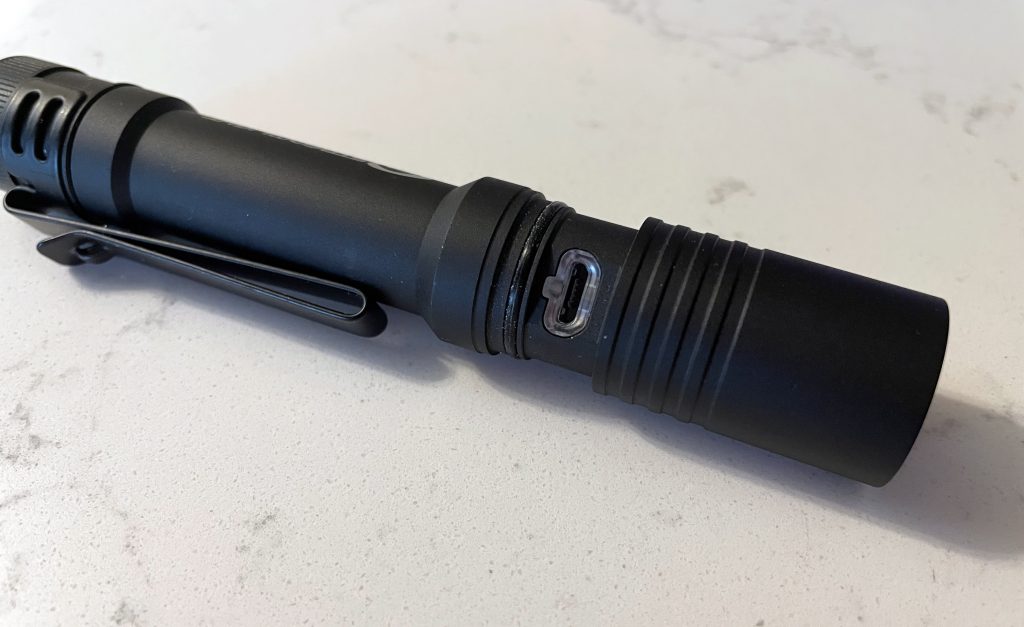 You access the light’s USB port by sliding forward an o-ring sealed shroud at the front of the light.