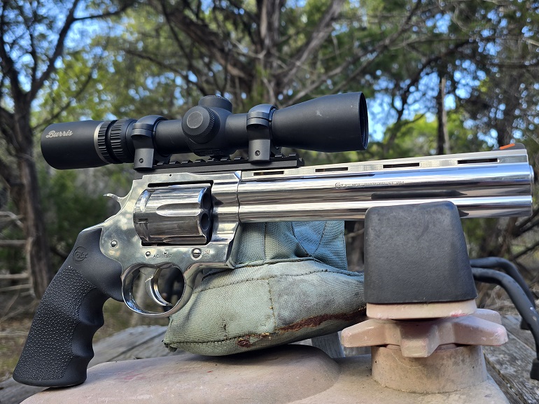 Although it doesn’t say “Hunter” on the side like the old models, Colt has obliged. For this deer season, I imbibed some ballistic nostalgia, picked up a new 8″ Anaconda, and headed out to the field. This new big snake gun put antlers on the wall, meat in the freezer, and a big ol smile on my face.