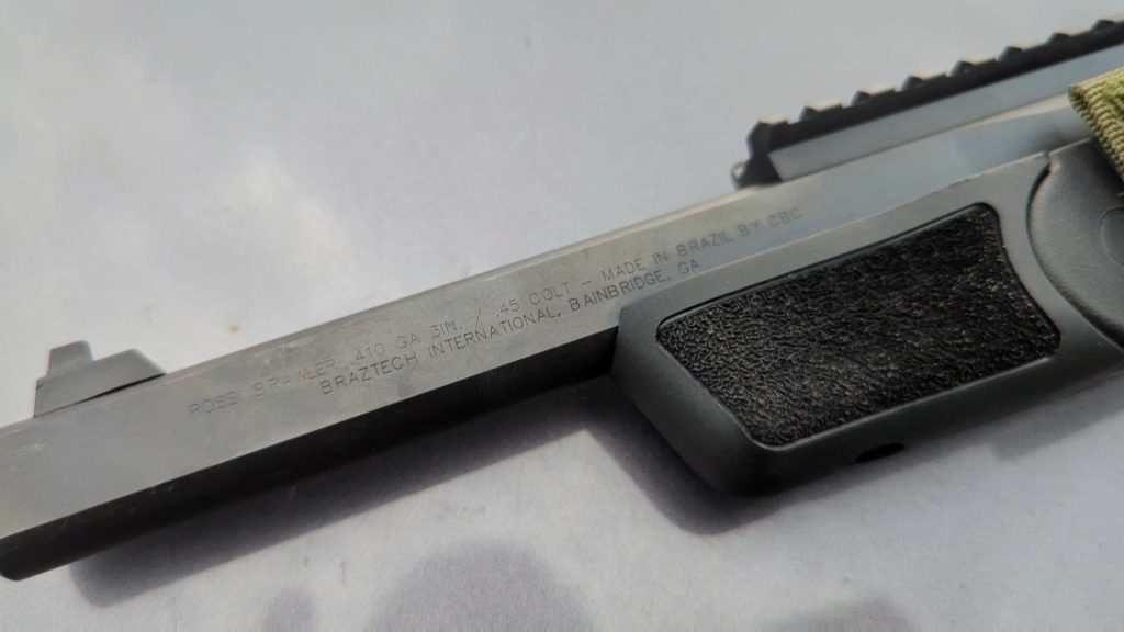 The Brawler suffers from the same problems the various Judge pistols have (except the Home Defender) in that the rifling messes with shot patterns, and the two inches of freebore messes with .45 Colt accuracy. It’s not particularly great at any one thing unless you use dedicated .410 handgun loads.