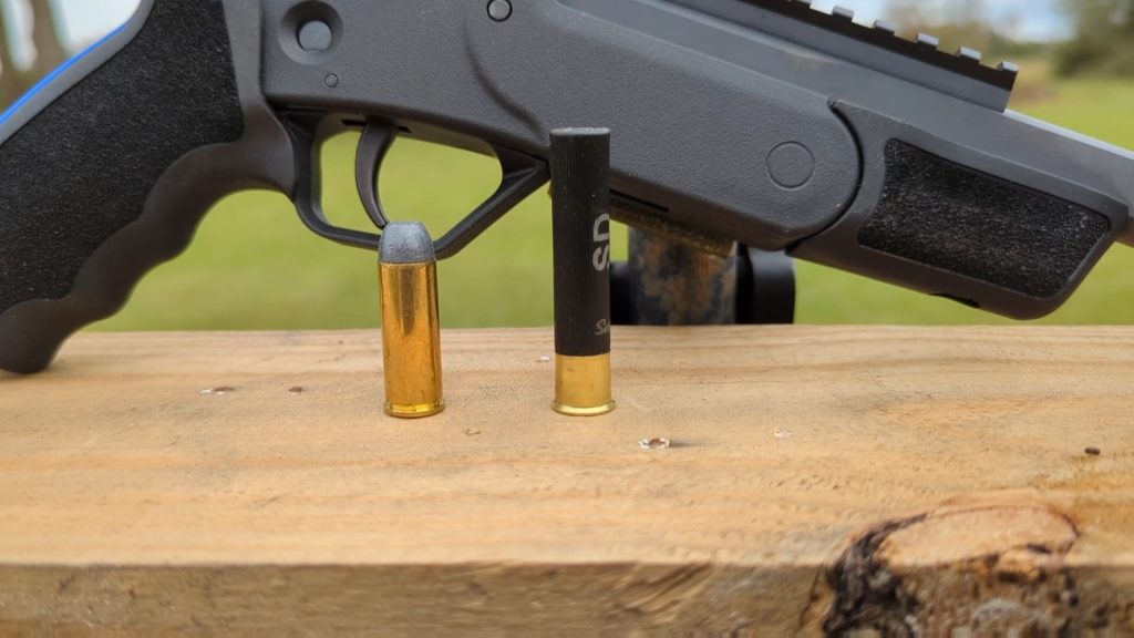If you’re unfamiliar with the Rossi Brawler, it is a single-shot .45 Colt/.410 handgun. It’s essentially one of Rossi’s Tuffy series with the barrel and stock chopped. Rossi also produces a survival rifle with a .45 Colt and .410 compatibility.