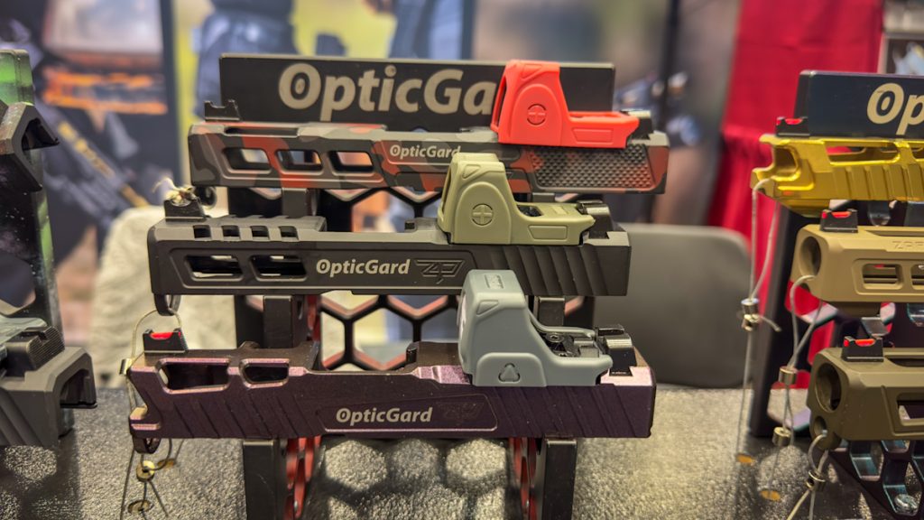 Another one of those small 10×10 booth finds came when I stumbled across OpticGard. They make protective polymer covers for optics. Currently they offer 11 models for red dots from Holosun, Trijicon and Vortex with more in development. The price ranges from $24.95 to $34.95 depending on color patten and size.