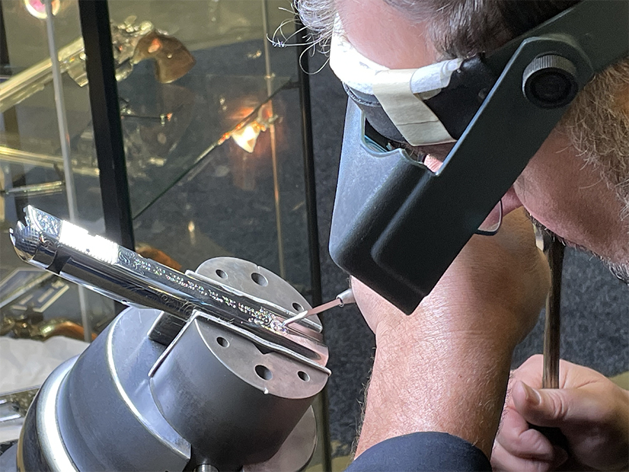 I stopped by the Colt booth to watch Master Engraver John Pease work on a 1911 slide. He makes it look so easy you fool yourself into thinking you could engrave a gun. That is until you remember you’ve never had a steady hand and can barely color within the lines.