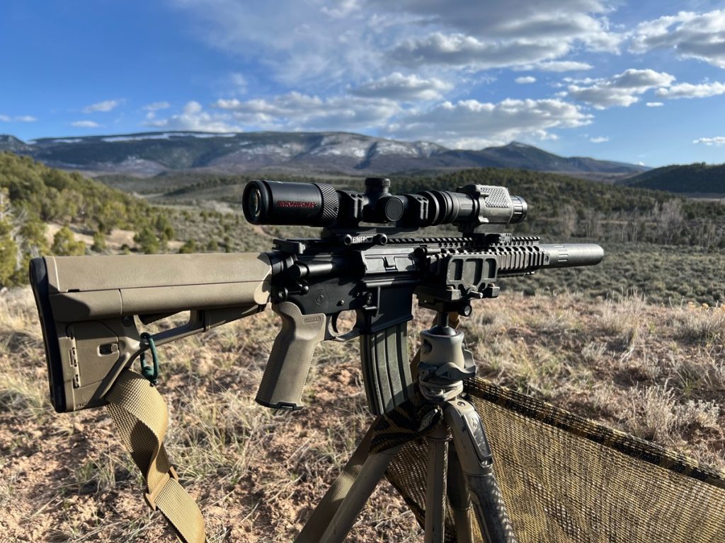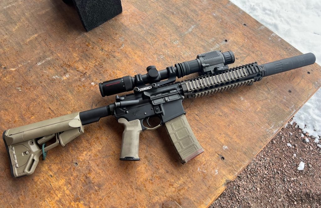 Your rifle will need enough rail space in front of your scope to mount the clip-on, but any extended Picatinny rail should work fine. I used the Jockey 640 mounted in front of the Winchester Supreme 1-4x LPVO on my SBR. The Jockey weighs in at .88 pounds and didn’t disturb the rifle’s handling characteristics any noticeable amount.