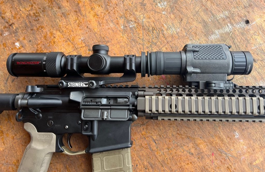 The included zeroing target is designed to be detected through the device. I admit, I didn’t use this target and didn’t find it necessary. When I got out on the range, the steel plates were in the sun and warmer than the ambient air temp. I could easily see the steel plates and opted to zero on a half-size IPSC plate at 100 yards. Once I went through the alignment setup in the thermal device, I was able to bracket the plate with the Winchester Supreme’s reticle, and zeroing was simple.