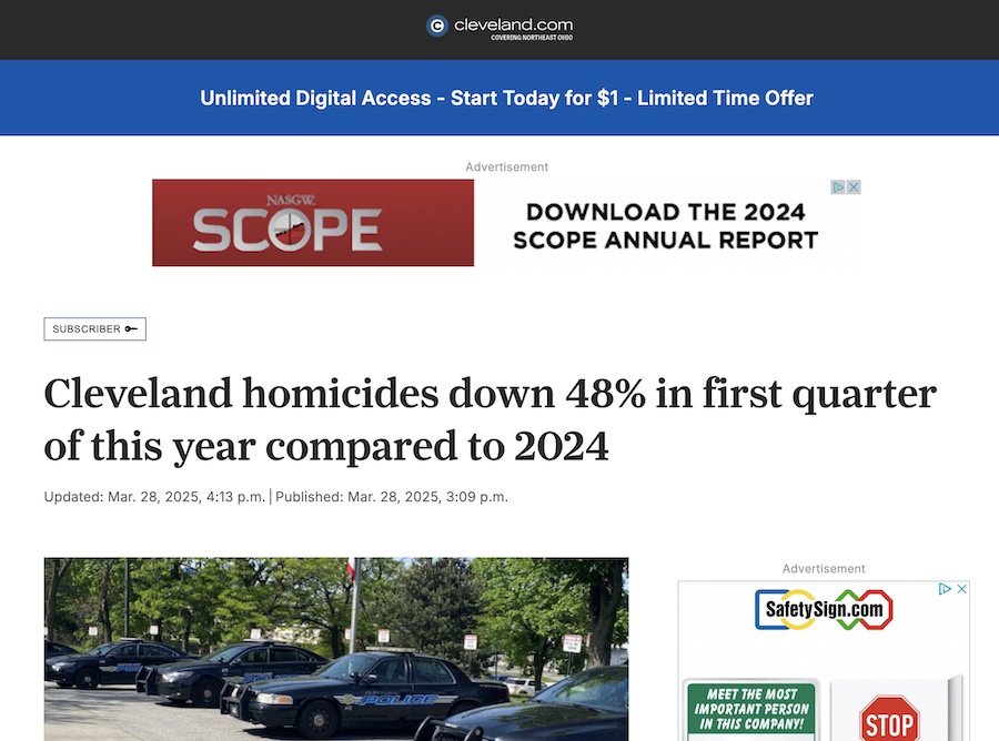 Is it possible that Giffords was unaware that someone had toted up the number of homicides in Cleveland for 2024? Why, it’s almost as if Giffords intentionally excluded the 2024 numbers to make the violence problem in Cleveland look worse than it really is.