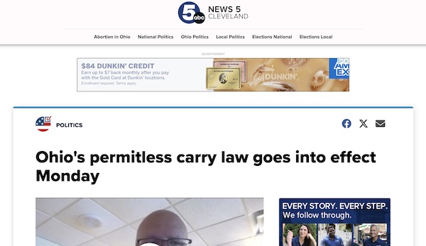 Ohio’s permitless carry law kicked in just 10 days before Bruen was handed down. So not only did SCOTUS affirm individuals’ right to carry a gun (by outlawing may-issue permitting schemes), but Ohio’s legislature eliminated the need to ask government for a permit altogether. That made it easier than ever for Clevelanders to carry…exactly what Giffords feared most. And eighteen months later, crime began to drop.