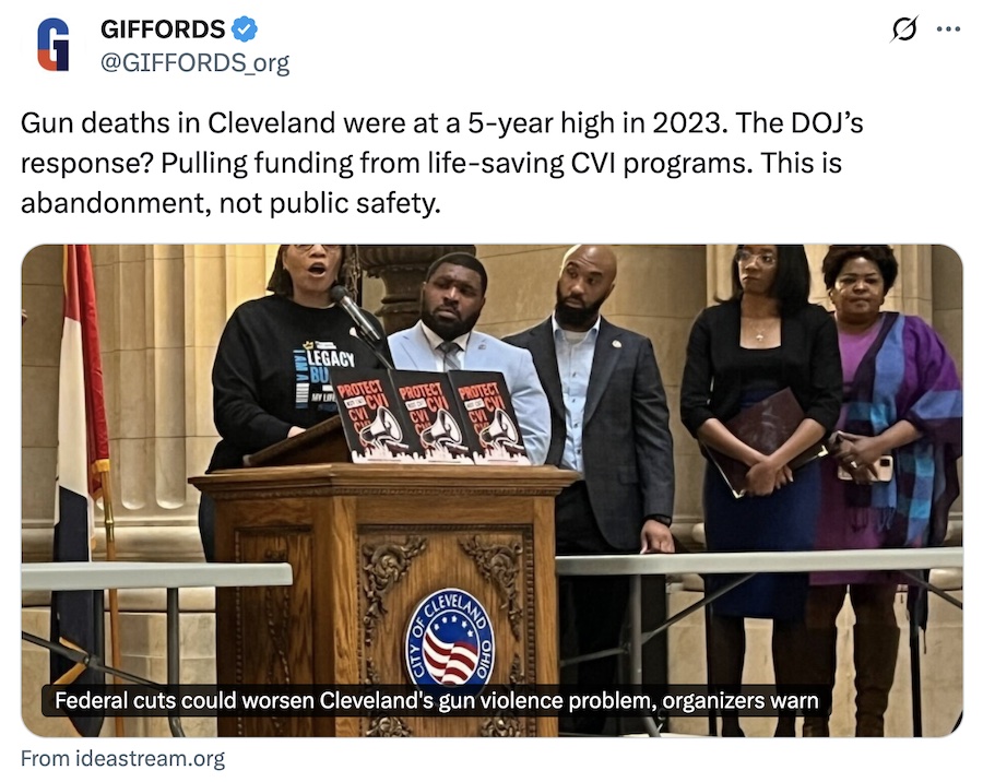 Gun deaths in Cleveland were at a 5-year high in 2023. The DOJ’s response? Pulling funding from life-saving CVI programs. This is abandonment, not public safety.
