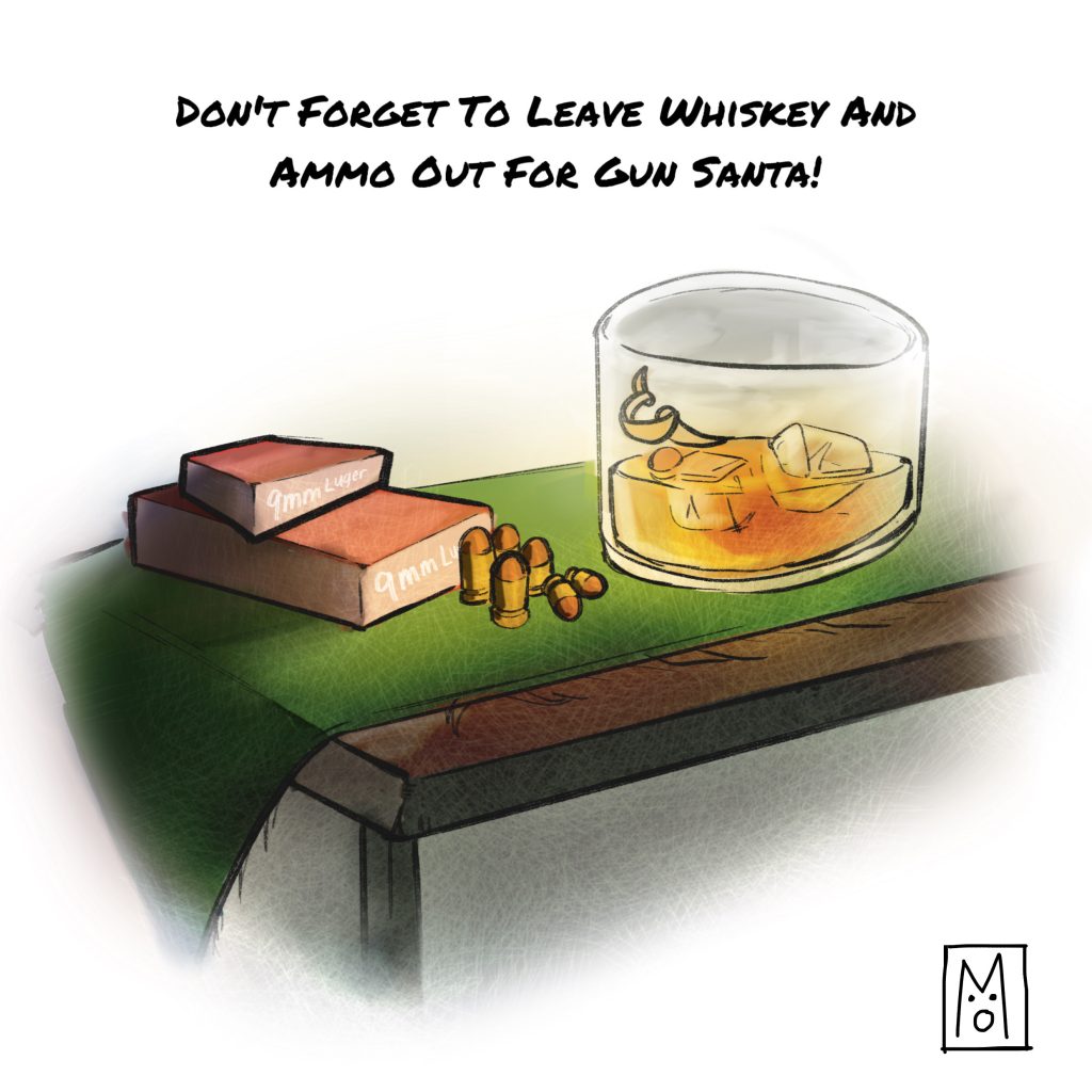 1. Whiskey and ammo. Well, I’ll leave him a few shots of Woodford reserve.