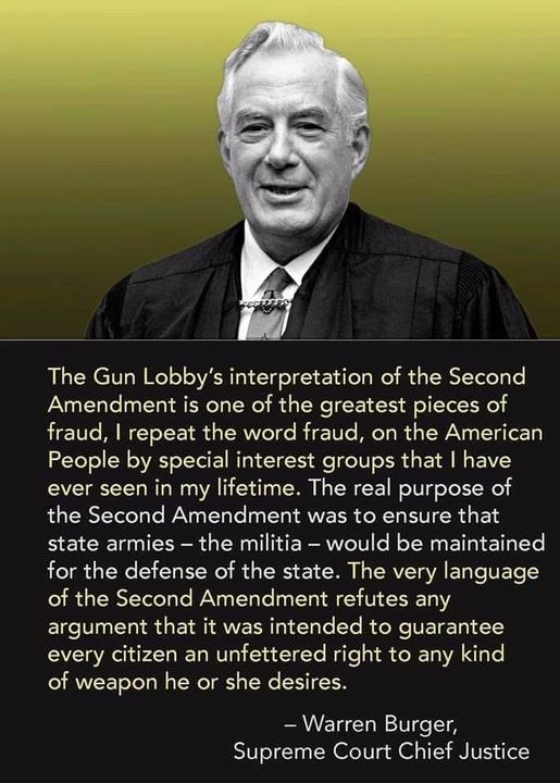 In the social media sphere, the argument is typically simplified into a picture of former Supreme Court Justice Warren Burger accompanied by a quote arguing against the “gun lobby’s” interpretation of the Second Amendment.