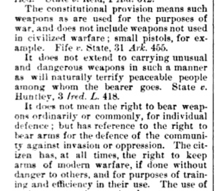 Henry Campbell Black is most famous for being the original author of Black’s Law Dictionary, which is still updated to this day. His 1895 work considered the Second Amendment an individual right, albeit one that only applied to the arms of “modern warfare”. “It does not tend to restrict the right of the citizen to bear arms for lawful purposes, but only punishes a particular abuse of that right.”