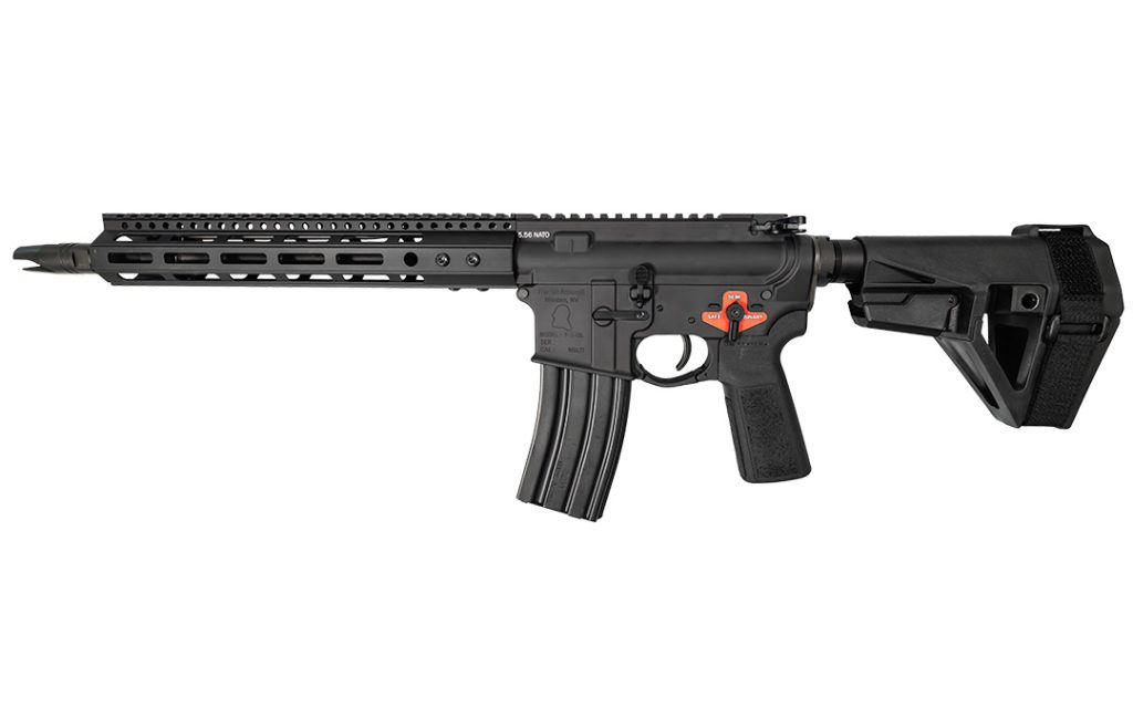 The C12 Pistol features a 12.5-inch barrel, mid-length gas system, forged receiver set, B5 grip, and the new SBA5 pistol brace from SB Tactical. The C12 Pistol’s combination of a mid-length gas system, Binary trigger, and Triumvir muzzle device makes it a smooth-shooting, entry-level AR pistol for optimal close quarter applications. MSRP for the C12 Pistol is $1,289.99.