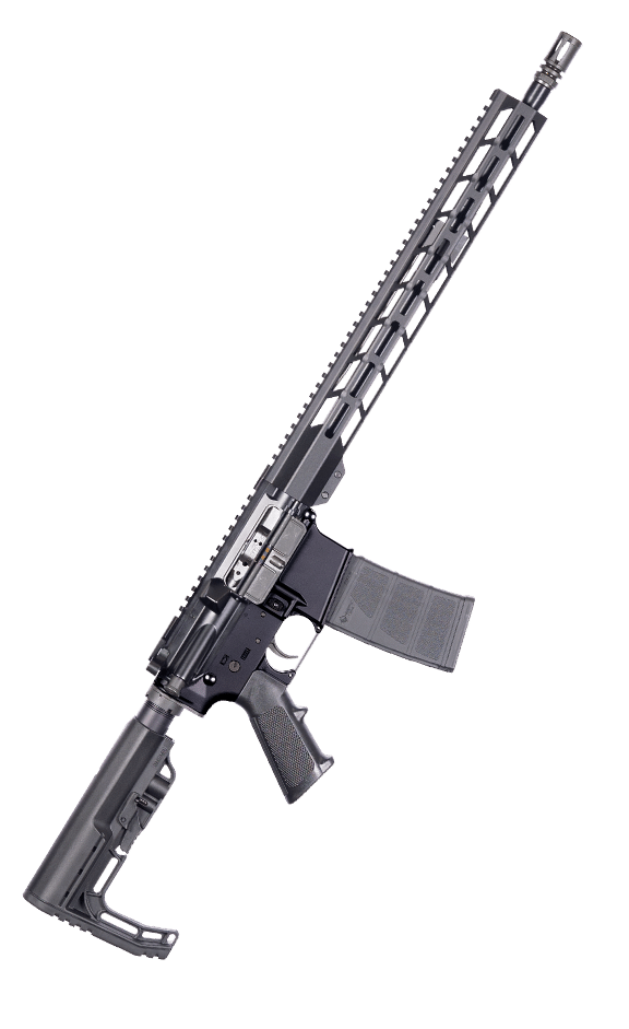 The P-15 BASE rifle is all American made and is built around a POF-USA Mil-spec P-15 receiver set. It uses their E2 16.5” match-grade 5.56×45 NATO barrel and a mid length gas system. POF pairs that up with a Mil-Spec BCG featuring POF’s Patented Roller Cam Pin. A Mil-spec Anti-tilt 6 Position Buffer Tube with a Mission First Tactical Minimalist Retractable Stock is standard.