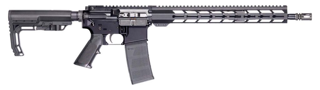 The P-15 BASE comes with black hard anodized receivers and handguard and a black Nitride coated barrel. The rifle uses a 15” M-LOK Handguard with MIL-STD 1913 rail at the 12 o’clock position and multiple M-LOK mounting interfaces for accessories at the 3, 6 and 9 o’clock positions. Other features include a Mil-Spec trigger trigger group, A2 flash hider and A2 pistol grip. The P-15 ships with a 30 round Mission First Tactical magazine where permitted. A 10 round mag version is available for states that require it as well, and there’s also a California compliant version.