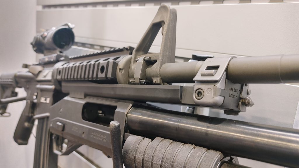 The idea of attaching a shotgun to a rifle isn’t new. KAC did it with the Masterkey, C-MORE did it with the M-26 MASS, and many others have come and gone. The idea is providing a man wielding a rifle a way to breach doors without having to carry a separate shotgun.
