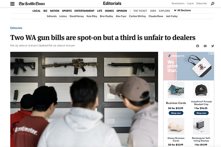The Seattle Times editorial board in Two WA Gun Bills Are Spot-on but a Third Is Unfair to Dealers