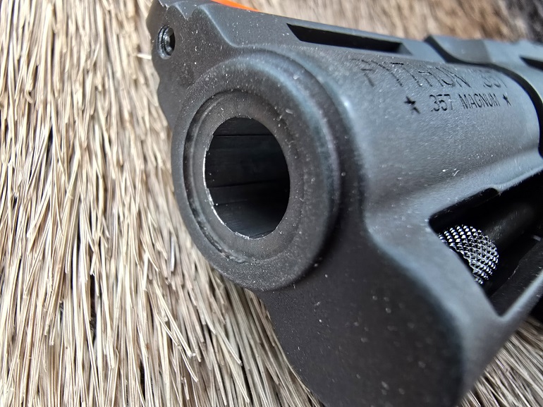 Just as with all of the other modern Pythons I’ve reviewed, cylinder end shake measured at .002″. Cylinder lock-up is excellent. The cylinder throats all measure at .358″ on a minus pin gauge set and the major bore diameter is .357″. This is all as it should be.